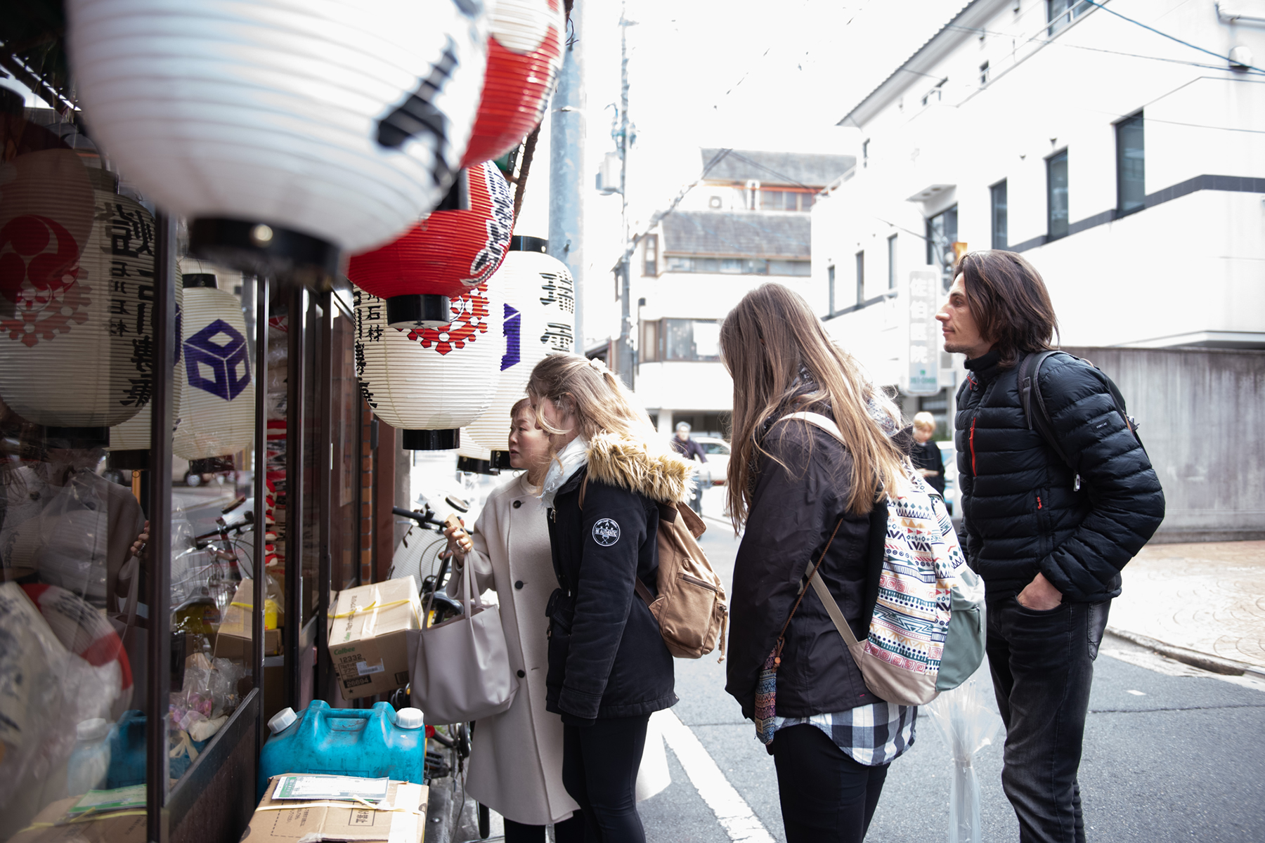 日本文化体験サービス「Luxtra Japan」400年の歴史を誇る錦市場で、ローカルなグルメを堪能しながらお買い物も楽しめます。美しい提灯と鳥居が特徴の錦天満宮も訪れます。