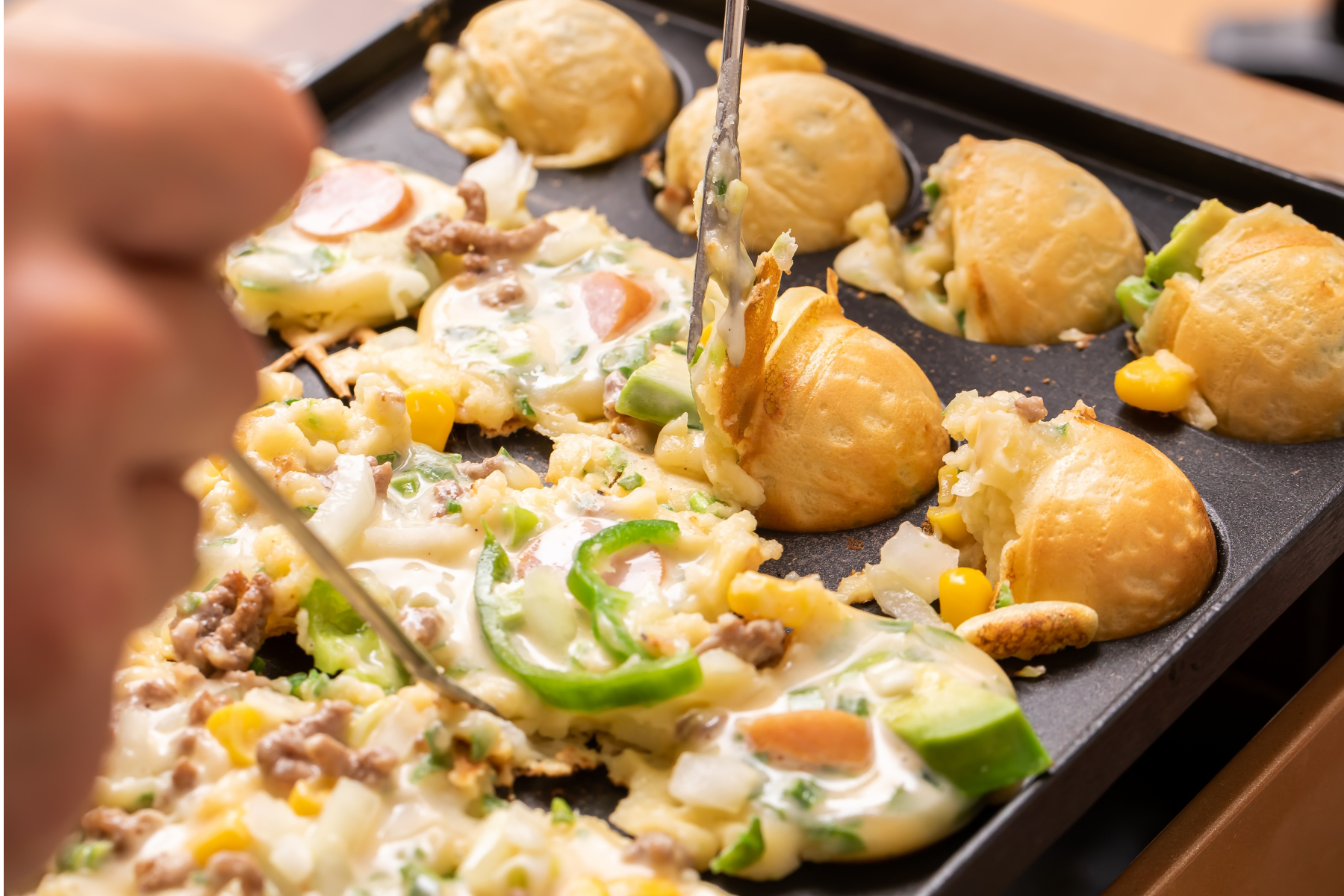 A popular choice for all ages, Takoyaki is a delightful treat. Experience the joy of making these octopus-filled savory balls together.